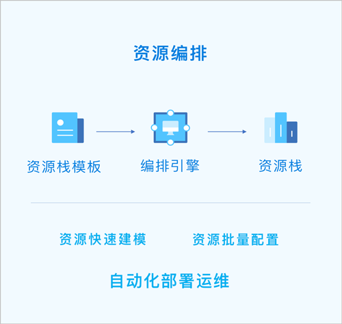 资源编排:一款帮助云计算用户简化云资源管理和自动化部署运维的服务。通过资源栈模板,定义所需的云资源、资源间的依赖关系、资源配置等,可实现自动化批量部署和配置资源,轻松管理云资源生命周期,通过API和SDK集成自动化运维能力。