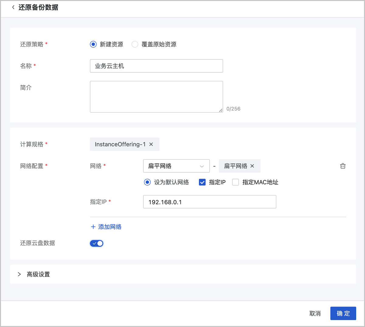 | 备份网络 | 192.168.0.0/24 |